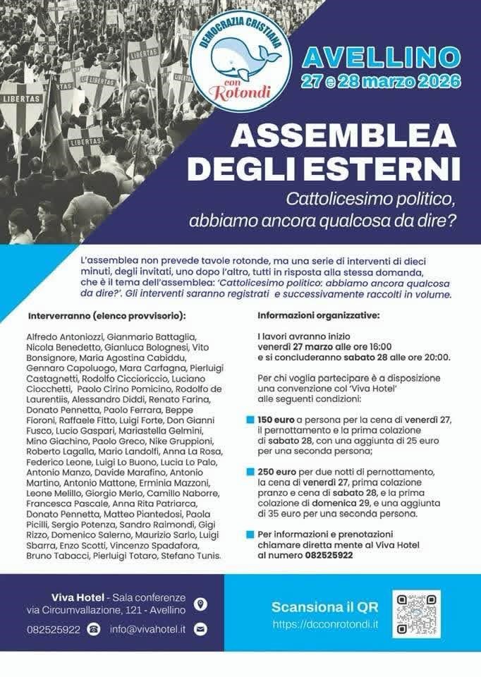 Il 27/28 marzo, ad Avellino, nella sala conferenze del Viva Hotel, in via Circumvallazione 121, è convocata la